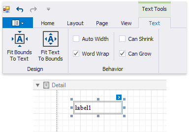The Toolbar provides a corresponding contextual tab when you select a report control. This tab allows you to specify settings and perform actions applicable to the selected element's type.