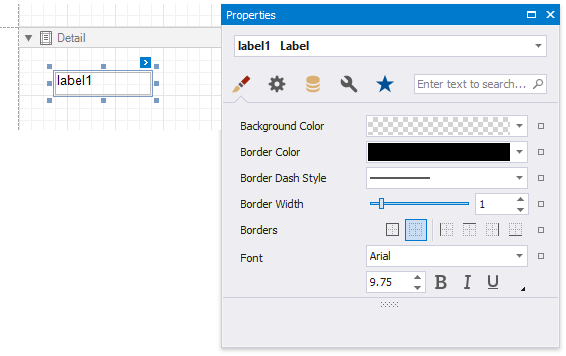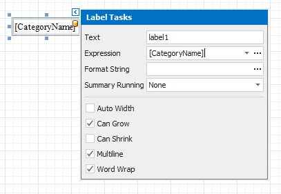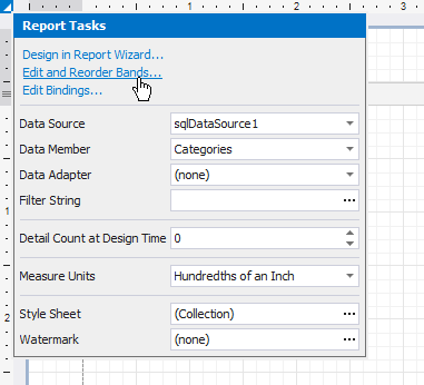 You can use smart tags to access the most commonly used element properties. Smart tags are available for reports and most report controls and bands.